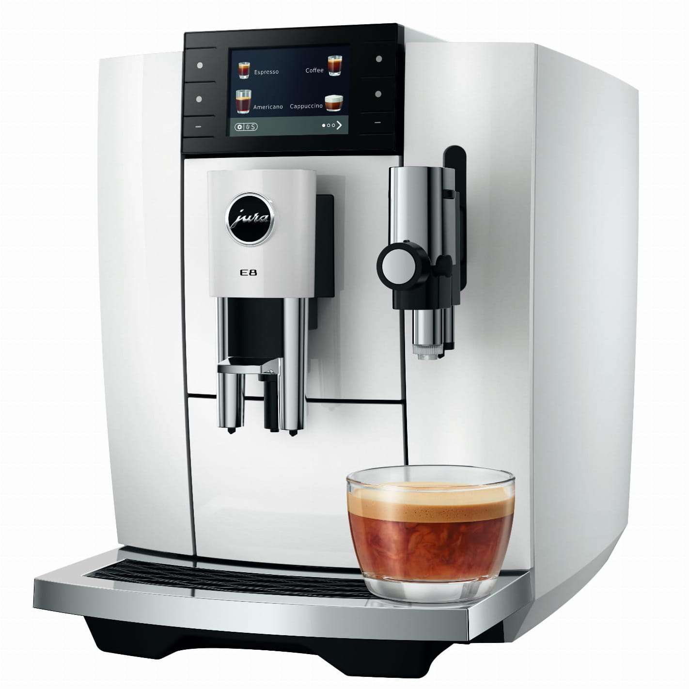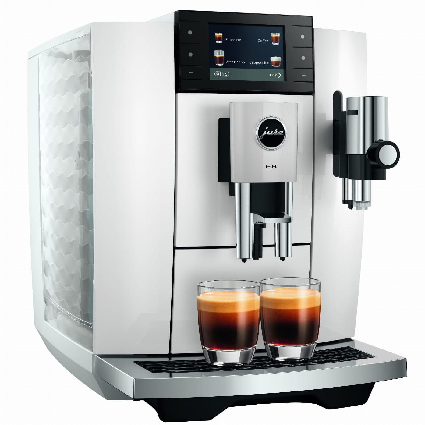 E8 w swojej najnowszej generacji łączy w sobie trzy wymiary przyjemności. Opanowuje gorące klasyki, serwuje Light Brew w czarujący i dopracowany sposób i zaprasza do subtelnie osłodzonego świata przyjemności. Ich różnorodność obejmuje 27 specjałów, które nadają każdej kawie preferowaną nutę i dopracowany aromat – od Hot, poprzez Light, aż po Sweet.