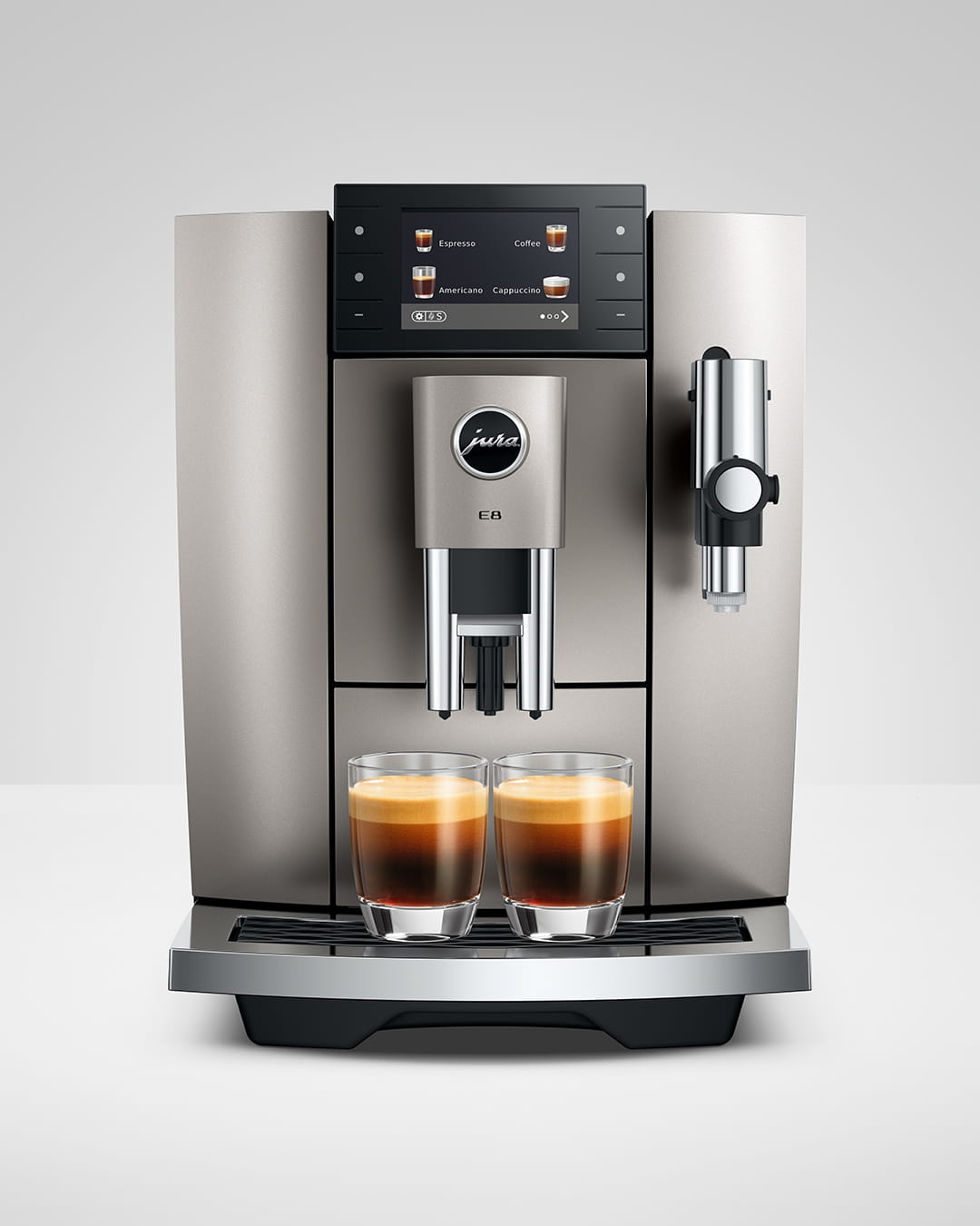 E8 w swojej najnowszej generacji łączy w sobie trzy wymiary przyjemności. Opanowuje gorące klasyki, serwuje Light Brew w czarujący i dopracowany sposób i zaprasza do subtelnie osłodzonego świata przyjemności. Ich różnorodność obejmuje 27 specjałów, które nadają każdej kawie preferowaną nutę i dopracowany aromat – od Hot, poprzez Light, aż po Sweet.
