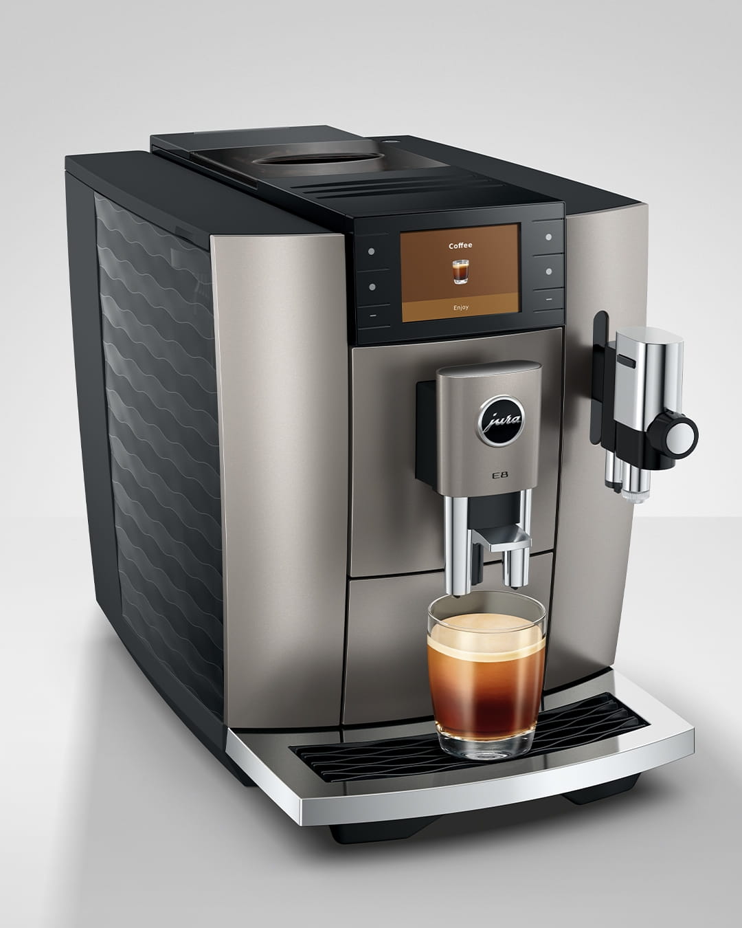 E8 oferuje większy komfort niż kiedykolwiek wcześniej: Dzięki zegarowi Coffee Timer i technologii J.O.E.® poranna kawa będzie gotowa, gdy tylko wstaniesz z łóżka, aby zachęcić Cię do rozpoczęcia kolejnego dnia. Asystent jakości Quality Assistant sprawia, że konserwacja E8 oszczędza zasoby i gwarantuje maksymalny poziom higieny dla nieograniczonej przyjemności picia kawy. 3,5-calowy kolorowy wyświetlacz z bocznymi przyciskami pozwala entuzjastom kawy łatwo poruszać się po tych wymiarach przyjemności, a poszczególne kolory ułatwiają orientację.